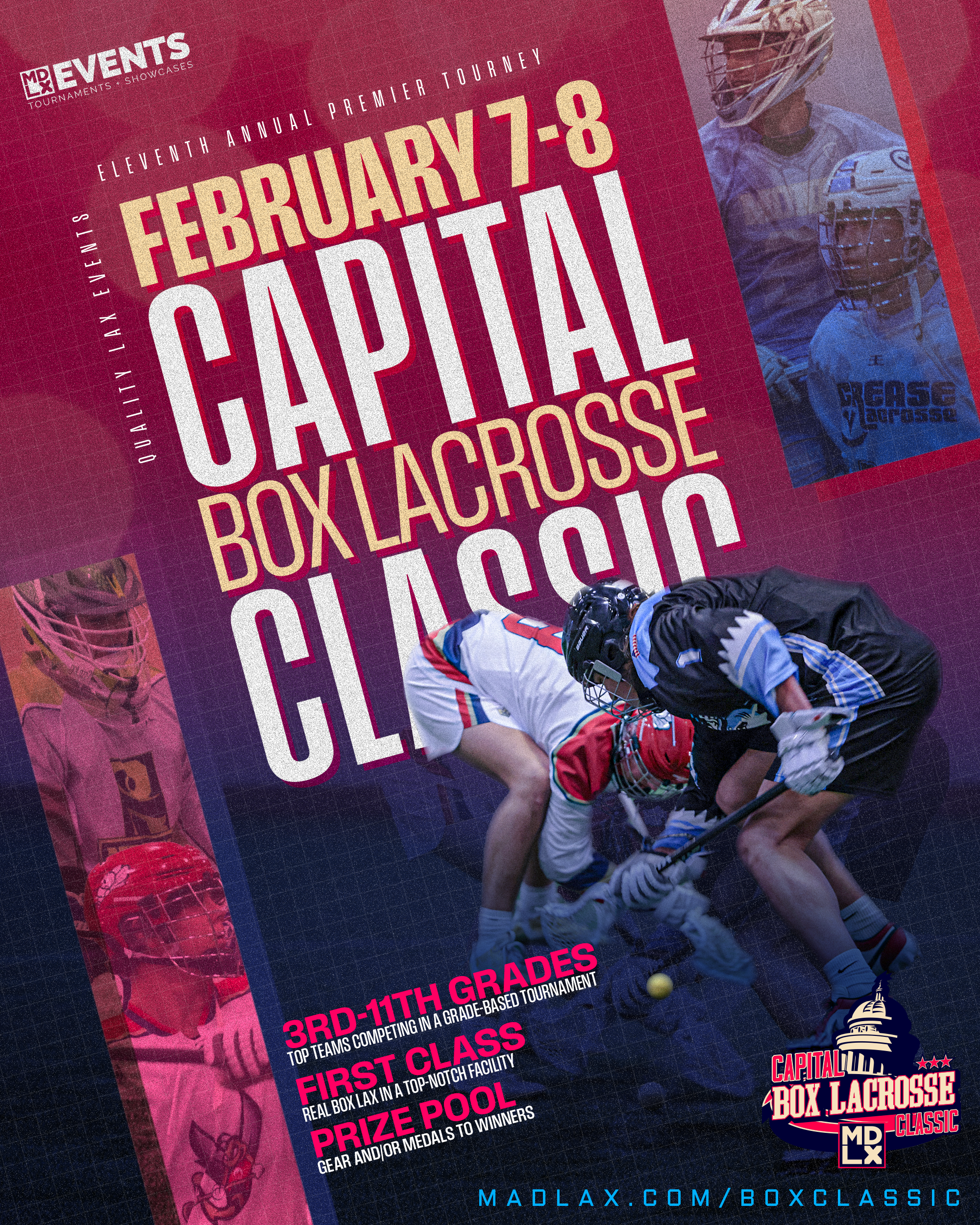 Welcome to the 11th annual Capital Box Lacrosse Classic. This is the nation's best box lacrosse tournament that will take place just outside the nation's capital in Virginia on February 7-8, 2026. We would like to officially invite all qualified teams and interested players to register today to enjoy quality competition in a top-notch facility.